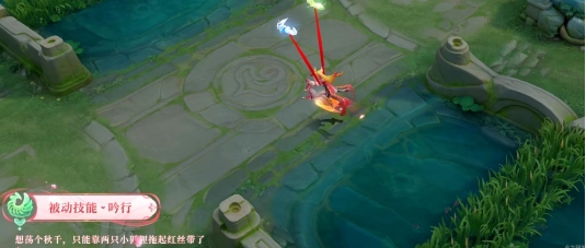 2、被动技能:闲下来想荡个秋千,那只能靠两只小狐狸用力拖起红丝带了。
