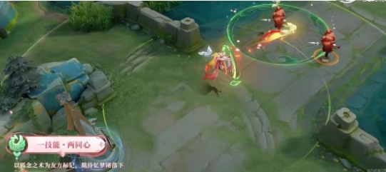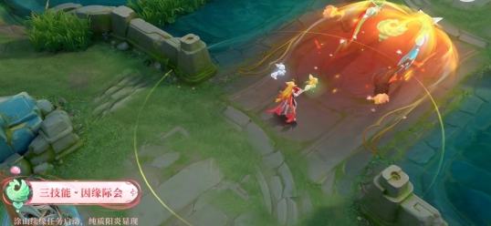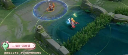 3、一技能:以狐念之术为友方标记,期待忆梦锤落下,唤起他们美好的结缘回忆,再由涂山红线仙牵引丝带,为祈愿人带来祝福。