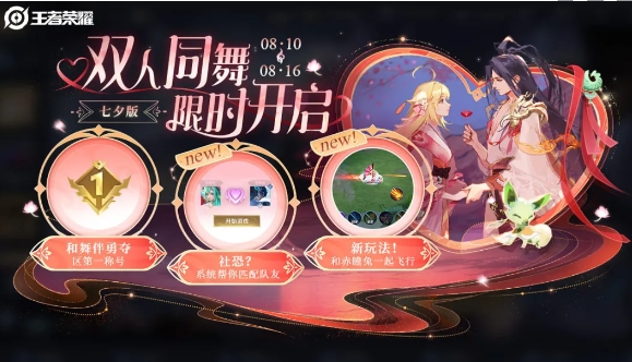 《王者荣耀《将在8月10日开启双人同舞玩法,玩家们可以与好友或随机匹配参与活动,赢得胜利即可获得分数奖励,提升排名,从而获得更加丰厚的奖励,下面小编就带来详细的玩法介绍,感兴趣的一起来看看吧。
