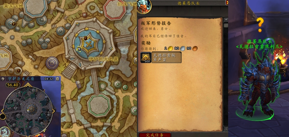 交付NPC:德莱恩队长(瓦德拉肯-守护巨龙之座顶层,56,40)