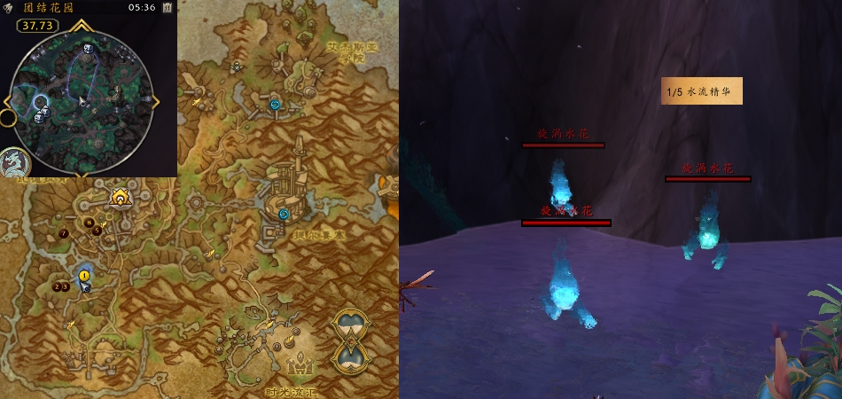 任务过程:接取任务之后,在团结花园(37,73)附近,击杀旋涡水花,几率掉落任务物品水流精华,需要收集5份。