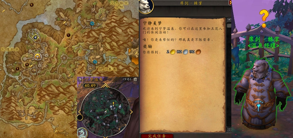 任务过程:前往宁梦温泉(宁梦温泉 40,49)与温泉经理交谈。