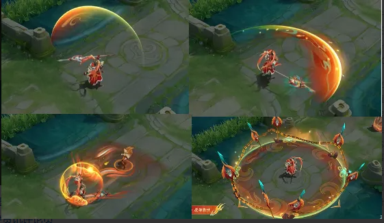 2、一技能:方天画戟末端绽放舞狮球特效,图标改为舞狮球转动样式。
