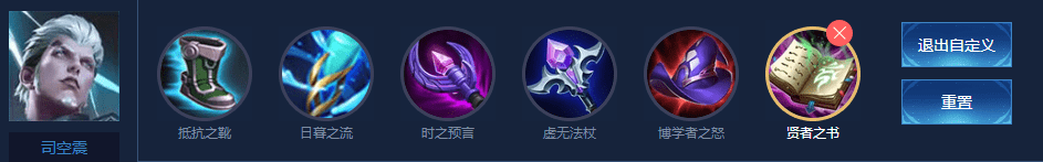 日暮之流+抵抗之靴+时之预言+虚无法杖+博学者之怒+贤者之书(这里打法穿,其实也可以出金色圣剑)下面会再推荐一套
