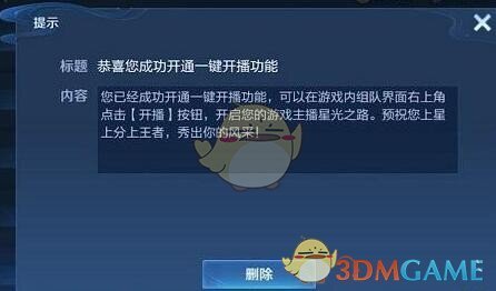 以上就是3DM小编整理带来的王者荣耀一键开播怎么设置?一键开播使用方法攻略享,更多相关游戏攻略,请点击关注3DM手游网!