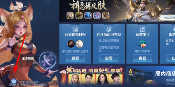 1、登录【王者荣耀】游戏客户端,在游戏页面点击右下角的妲己图标。