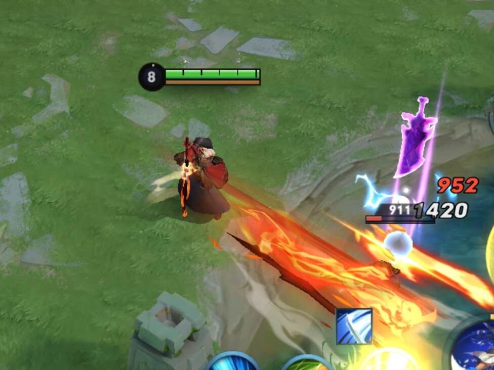 如果是对位又肉伤害又高英雄的话,前期可以利用1技能配合2技能消耗对方,尽量不要跟他硬刚,因为橘右京不能一套秒杀对方,而且如果用完1技能的两段位移的话,很容易被对方抓住机会打出一波伤害,这样我们就会处于被动状态了,所以最好的对线思路就是先利用12技能持续消耗,只要对方残血被迫守塔,我们的发育空间和击杀对方的机会就很大了。