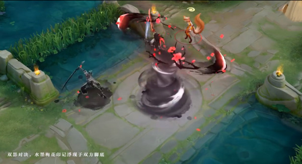 4、一决生死:使用技能后敌人脚下会有梅花印记,并且水墨会在脚底炸开。