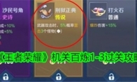 王者荣耀机关百炼目前共有三个章节,每个章节四个关卡。游戏中机关百炼1-3中有12波小怪,推荐玩家选择英雄鲁班七号,初始道具选择通商文书,武器选择无敌鲨嘴炮。下面是3DM小编给大家带来的《王者荣耀》机关百炼1-3过关攻略,感兴趣的小伙伴们一起来看看吧。>>>>小编推荐:机关百炼1-1 |机关百炼1-2|机关百炼1-3|机关百炼1-4>>>>小编推荐:机关百炼2-1 |机关百炼2-2|机关百炼2-3|机关百炼