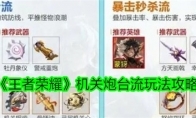王者荣耀游戏中机关炮台流玩法是机关百炼活动中非常好用的流派,那么王者荣耀机关炮台流怎么搭配呢?这里推荐英雄鲁班大师或者是戈娅。下面是3DM小编给大家带来的《王者荣耀》机关炮台流玩法攻略,感兴趣的小伙伴们一起来看看吧。>>>>小编推荐:机关百炼2-1 |机关百炼2-2|机关百炼2-3|机关百炼2-4>>>>小编推荐:机关百炼3-1|机关百炼3-2|机关百炼3-3|机关百炼3-4《王者荣耀》机关炮
