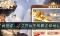 《王者荣耀》机关百炼现已开启无尽模式,由于很多小伙伴不知道怎么解锁,下面跟小编一起来看看详细的机关百炼无尽模式解锁方法吧,希望能帮到各位。各位玩家可以参考一下。王者荣耀机关百炼无尽模式怎么解锁1、目前该模式尚未开启,等到3月19号玩家才能参与机关百炼的无尽模式。2、在无尽模式中通过第16波就能领取50百炼天枢。机关百炼活动详情1、开放时间:3月14日10:00-3月27日23:592、打开游戏,进入主界面后点击“竞技对抗”按钮,进入游戏模式选择界面,选择机关百炼无尽关卡即可。3、或者通过活动进入,找到无尽百炼,然后点击机关百炼,前往即可。4、选择后点击开始游戏即可进入机关百炼无尽关卡。以上就是3DM小编整理带来的《王者荣耀》机关百炼无尽模式解锁方法,更多相关游戏攻略,请关注3DM手游网!