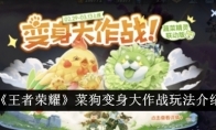 王者荣耀菜狗变身大作战怎么玩?这个活动其实已经开启了,这个模式要怎么进入呢?想知道的玩家快来看看下面的王者荣耀菜狗变身大作战玩法介绍吧!希望对大家会有帮助。《王者荣耀》菜狗变身大作战玩法介绍玩法时间:2月29日0点-3月14日0点入口位置:打开游戏主界面,在右侧万象天工的上方位置已经有【变身大作战】的入口了,玩家点击进入即可体验。玩法介绍:局内通过击败野怪、敌方单位获得碎片,收集满碎片可随机变身蔬菜精灵的不同角色,每个角色都拥有不同的技能效果。皮肤的获取方式官方也进行了公布,和之前的联动皮肤都不同,这一次的联动皮肤会通过战令的方式获取。和敖隐的龙令一样,这个系列的皮肤也会开启一期特别的战令,玩家开通进阶版战令并且达到对应的等级就可以获得这些蔬菜联动皮肤了。以上就是3DM小编整理带来的王者荣耀菜狗变身大作战玩法介