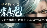 王者荣耀新春龙令30级怎么升级?王者荣耀新春龙令需要升级,等级达到要求才可以领取奖励,新英雄敖隐需要在新春龙令30级的时候才能获得,所以玩家们想要知道如何才能快速提升新春龙令的等级,大家需要去做各种任务,积累更多经验才可以提升等级,详细的请多来小编这里看看。《王者荣耀》新春龙令30级升级技巧龙令每一级所需升级经验为2000点,完成【每日任务】和【龙族任务】均可获得龙令经验。【每日任务】中有多条不同任务,玩家可自由刷新选择偏好任务进行完成,完成一条可获得800点经验;从每日任务中获取的龙令经验上限为4000点/每日,任务进度和经验上限将在每日0点重置。其中5v5对局任务包含各类5V5模式(排位、匹配、人机、娱乐模式、巅峰赛、赏金赛、战队赛、微赛事、全民电竞),其中娱乐模式为“万象天工”里的各类5V5玩法。单人离线