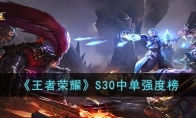 《王者荣耀》是腾讯天美工作室推出的英雄竞技手游,不是一个人的王者,而是团队的荣耀!5v5王者峡谷PVP对战,领略英雄竞技的酣畅淋漓!王者荣耀S30已经开启好一段时间了,这个赛季对抗路各种强势英雄层出不穷,那么大家知道对抗路哪些英雄强吗?现在就和小编一起来看看王者荣耀S30对抗路强度榜的最新内容吧。《王者荣耀》S30对抗路强度榜战边:T0:项羽(专精装)T0.5:吕布T1:马超、赵怀真、夏洛特T1.5:暗信、关羽、老夫子、花木兰T2:蒙恬、狂铁、元歌、光信T2.5:孙策、芈月、哪吒、杨戬T3:亚瑟、曹操、达摩、钟无艳坦边:T0.5:白起T1:夏侯惇、猪八戒T1.5:刘邦T2:廉颇、程咬金注:同一梯度中的排名顺序不分先后,且英雄的强度会随着版本环境的调整及英雄的调整而变动,如野区改动、兵线改动、装备改动、技能数值改