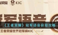 王者荣耀冠军语音怎么获得?为庆祝2022年王者荣耀世界冠军杯KIC总冠军诞生,王者荣耀官方推出了冠军语音,相信还有很多小伙伴不清楚这个冠军语音要怎么获得,下面小编给大家带来了王者荣耀冠军语音的获取方法,有需要的小伙伴一起来了解看看吧。《王者荣耀》冠军语音获取攻略:再次恭喜武汉@eStarPro 获得2022年王者荣耀世界冠军杯KIC总冠军!@王者荣耀全球电竞 由粉丝们参与创作的【冠军语音】也已经上线游戏~群星永璨,加冕八冠星不灭,胜不止感谢粉丝们提供的台词创意活动时间:1月3日~1月9日获取方法:小伙伴们前往【游戏内赛事专区】进行签到,即可领取!期待大家换上冠军语音,一起在游戏中感受武汉eStarPro夺冠的喜悦,回忆电竞赛场的热血与激情~以上就是3DM小编整理带来的《王者荣耀》冠军语音获取攻略,更多相关游戏攻
